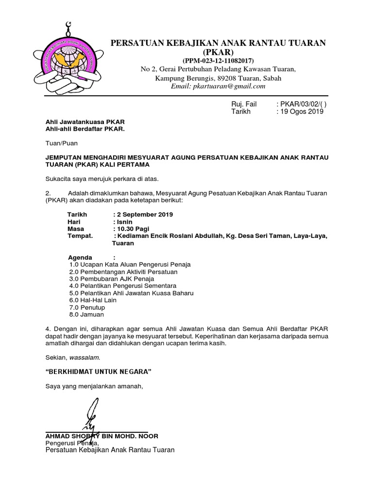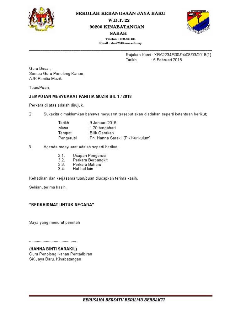 Contoh Surat Panggilan Mesyuarat Terkini Owen King